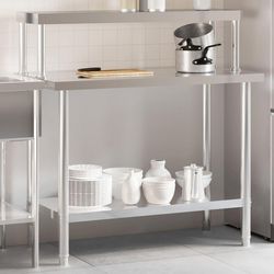 - Vaste espace de travail : la table de preparation en acier inoxydable est conçue avec une etagere inferieure et une etagere superieure pour un espace de rangement personnalise, offrant un vaste espace de rangement pour votre four a micro-ondes, vos ustensiles de cuisine ou tout autre outil dont vous pourriez avoir besoin.