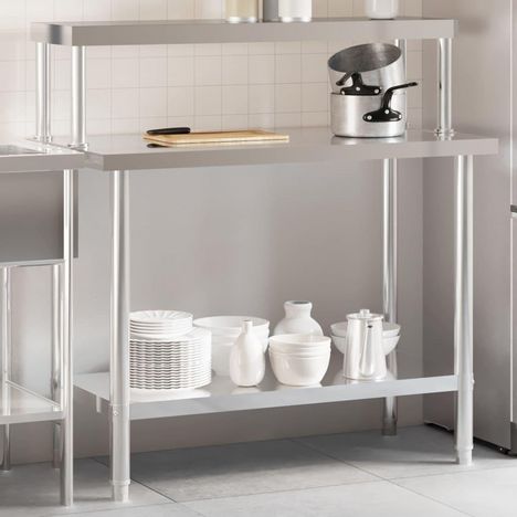 Table de travail de cuisine avec etagere 110x55x120 cm inox