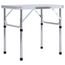 Fabriquee en aluminium leger et avec dessus de table en MDF, cette table est facile a transporter, simple a installer et se nettoie rapidement. Le cadre et le dessus robustes rendent cette table solide et durable. Grace a sa conception pliante, cette table de camping est facile a transporter et peut etre rangee rapidement lorsqu'elle n'est pas utilisee. La poignee de transport permet d'emporter tres facilement la table avec vous.