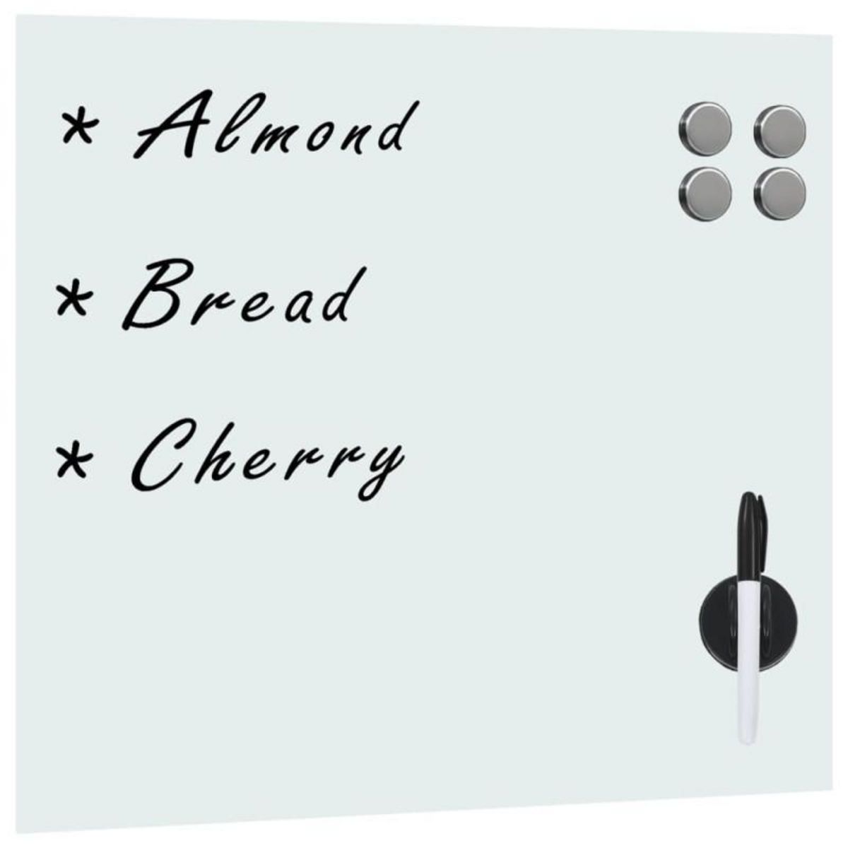 Le Tableau noir magnétique mural Verre 50x50 cm de VIDAXL est un produit moderne et fonctionnel, idéal pour les bureaux, les écoles ou les maisons. Fabriqué en verre trempé, il offre une surface lisse et durable pour écrire avec un stylo blanc effaçable à sec. Ce tableau est également magnétique, permettant de fixer des notes ou des papiers grâce aux aimants inclus. Avec ses dimensions compactes de 50 x 50 cm, il s'intègre parfaitement dans n'importe quel espace.