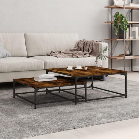 Tables basses gigognes 2 pcs chene fume bois d'ingenierie