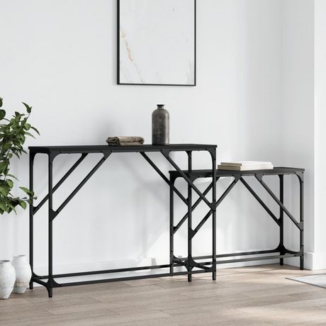 Tables console gigognes 2 pcs noir bois d'ingenierie