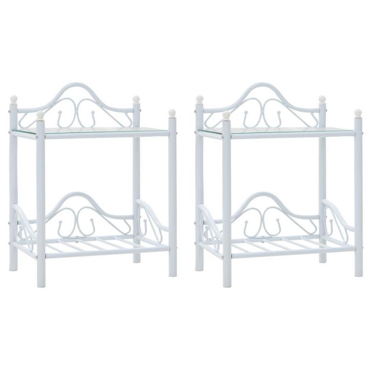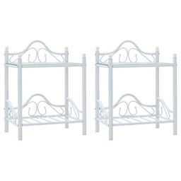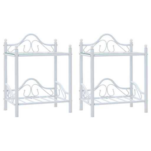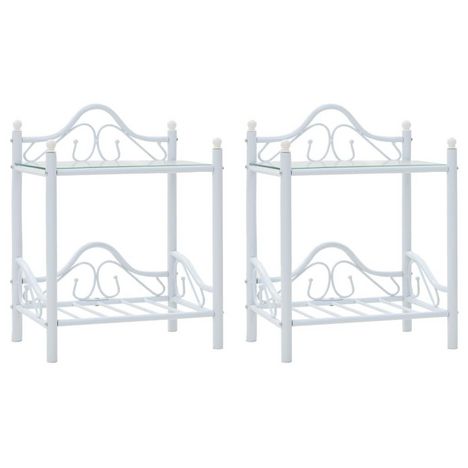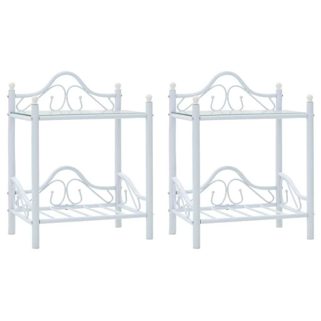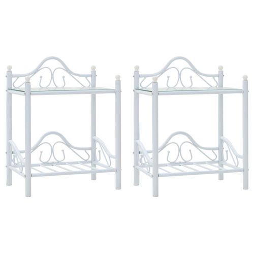 Tables de chevet 2 pcs Acier et verre trempe 45x30,5x60cm Blanc