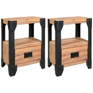 Cette table de chevet attrayante et industrielle est fabriquee en bois d'acacia massif avec des pieds et des details en acier et sera un excellent ajout au decor de votre chambre a coucher.