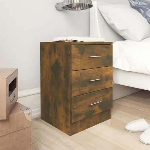 Les Tables de chevet 2 pcs Chêne fumé 38x35x56 cm de la marque VIDAXL offrent un design altique et élégant qui s'intègre parfaitement dans n'importe quelle décoration intérieure. Le bois d'ingénierie utilisé pour leur fabrication assure une surface lisse et une apparence chaleureuse, tandis que la finition chêne fumé ajoute une touche de sophistication à votre chambre.
