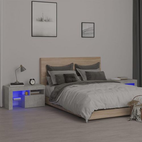 Tables de chevet 2 pcs et lumieres LED Gris beton 70x36,5x40 cm