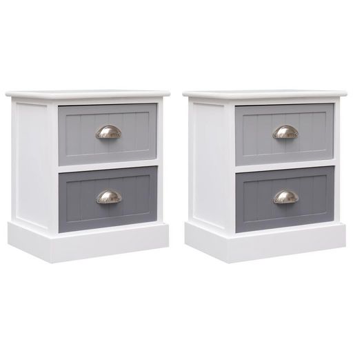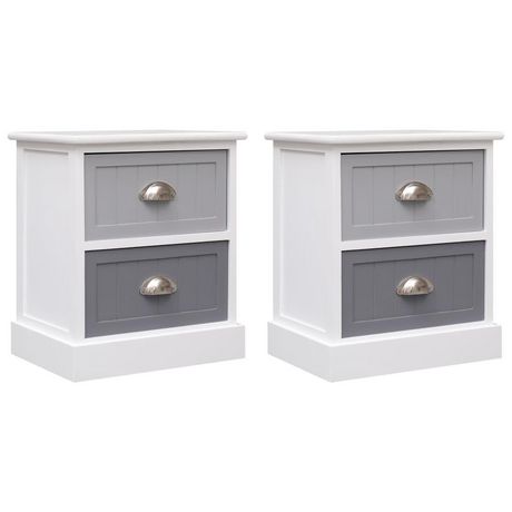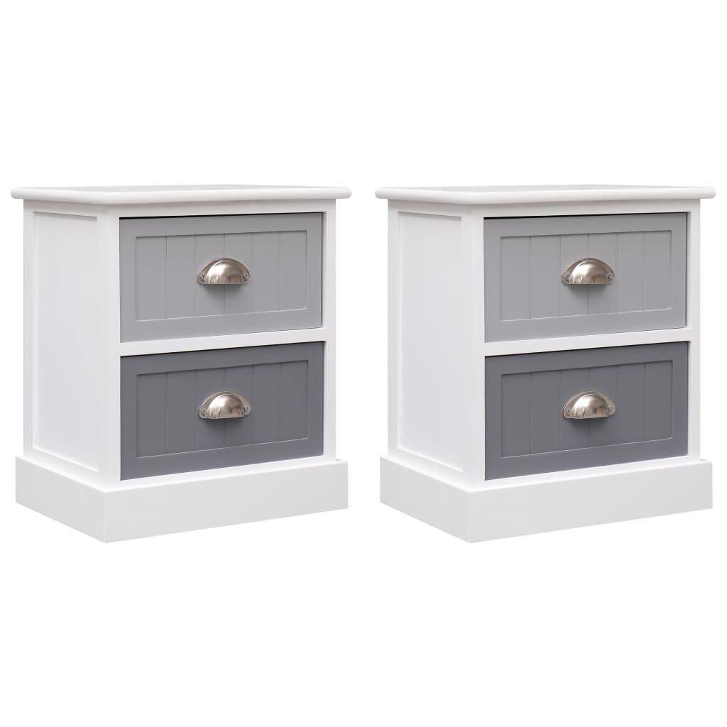 Ajoutez une touche d'elegance a votre decoration interieure avec nos tables de chevet en bois de style vintage ! Elles peuvent egalement etre utilisees comme support de telephone a cote de votre canape ! Ces armoires compactes sont dotees de 2 tiroirs fonctionnant sans a-coups, offrant un grand espa