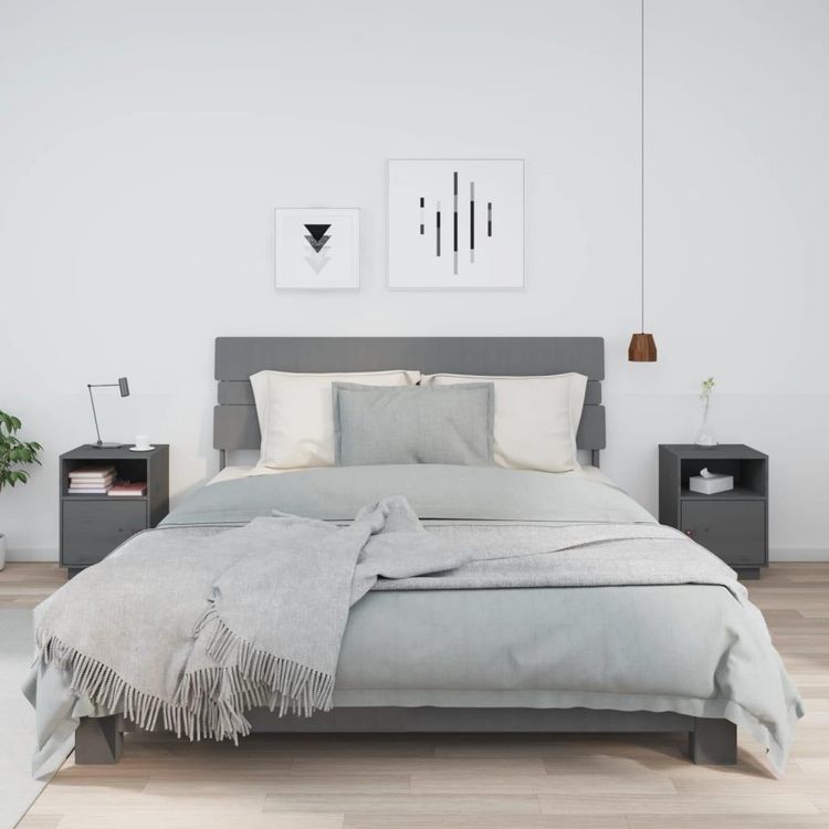 Tables de chevet 2 pcs Gris 40x34x55 cm Bois de pin massif