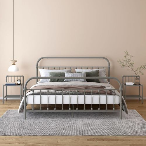 Tables de chevet 2 pcs Gris et noir Metal et verre
