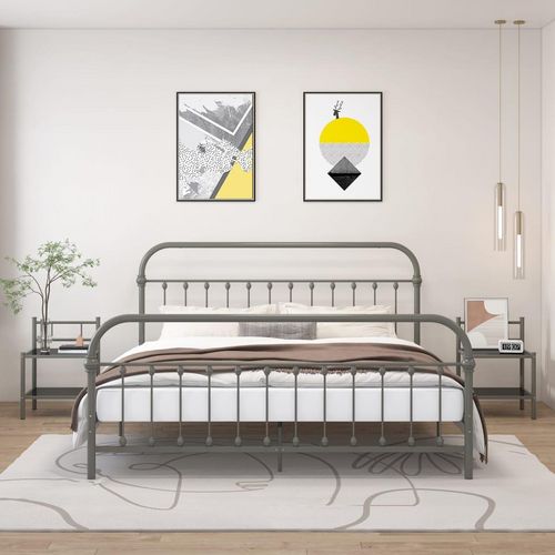 Tables de chevet 2 pcs Gris et noir Metal et verre