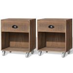 Le dessus robuste est ideal pour poser des cadres de photos, un reveil, une lampe de chevet, des livres, etc. Le tiroir et l'etagere de chaque table offrent assez d'espace pour ranger soigneusement toutes sortes de petits objets et pouvoir les avoir a portee de main. Avec quatre roulettes sur chacune, ces tables de nuit peuvent etre facilement deplacees. Elles peuvent etres montees de deux façons, avec le tiroir en haut ou en bas.
