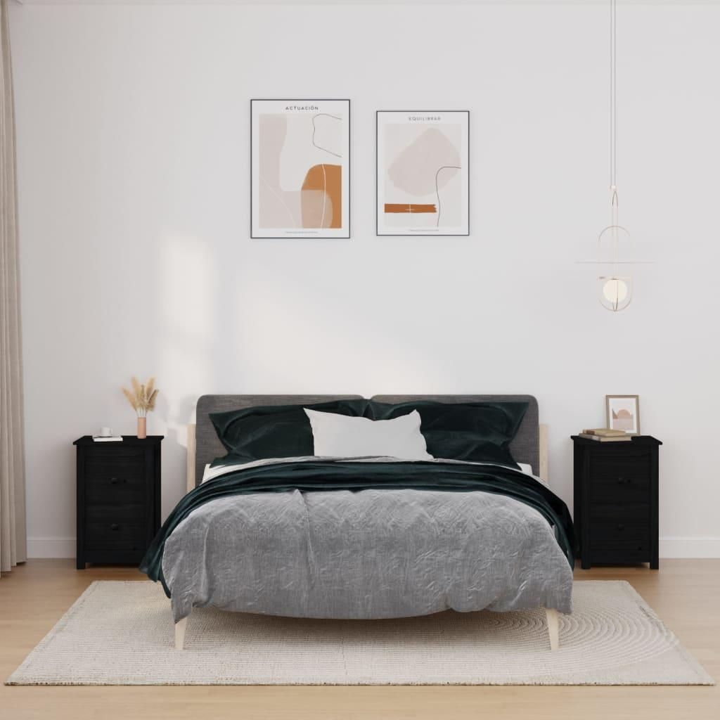 Tables de chevet 2 pcs Noir 40x35x61,5 cm Bois de pin massif