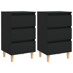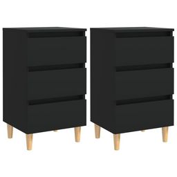 Tables de chevet avec pieds en bois 2 pcs noir 40x35x69 cm