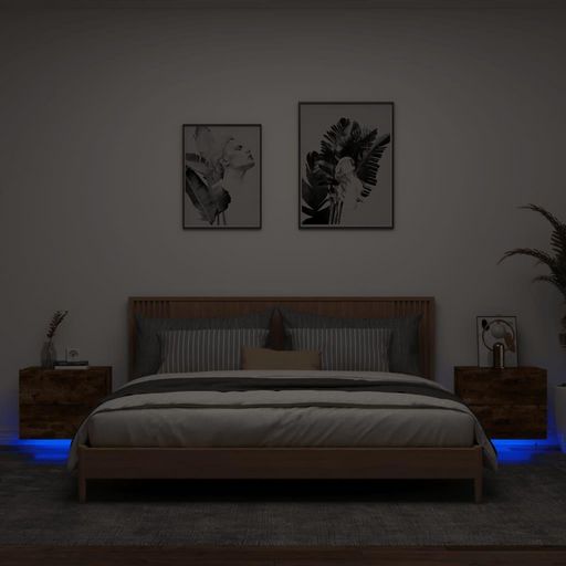 Tables de chevet murales avec lumieres LED 2 pcs chene fume