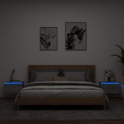 Tables de chevet murales avec lumieres LED 2 pcs sonoma gris