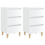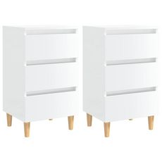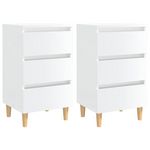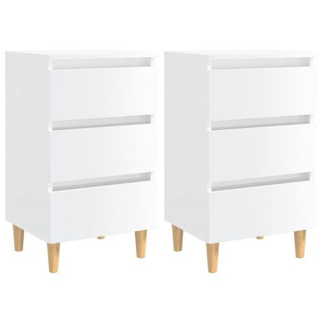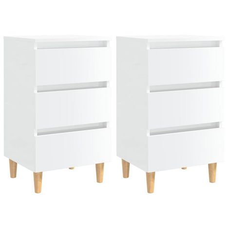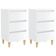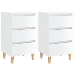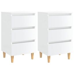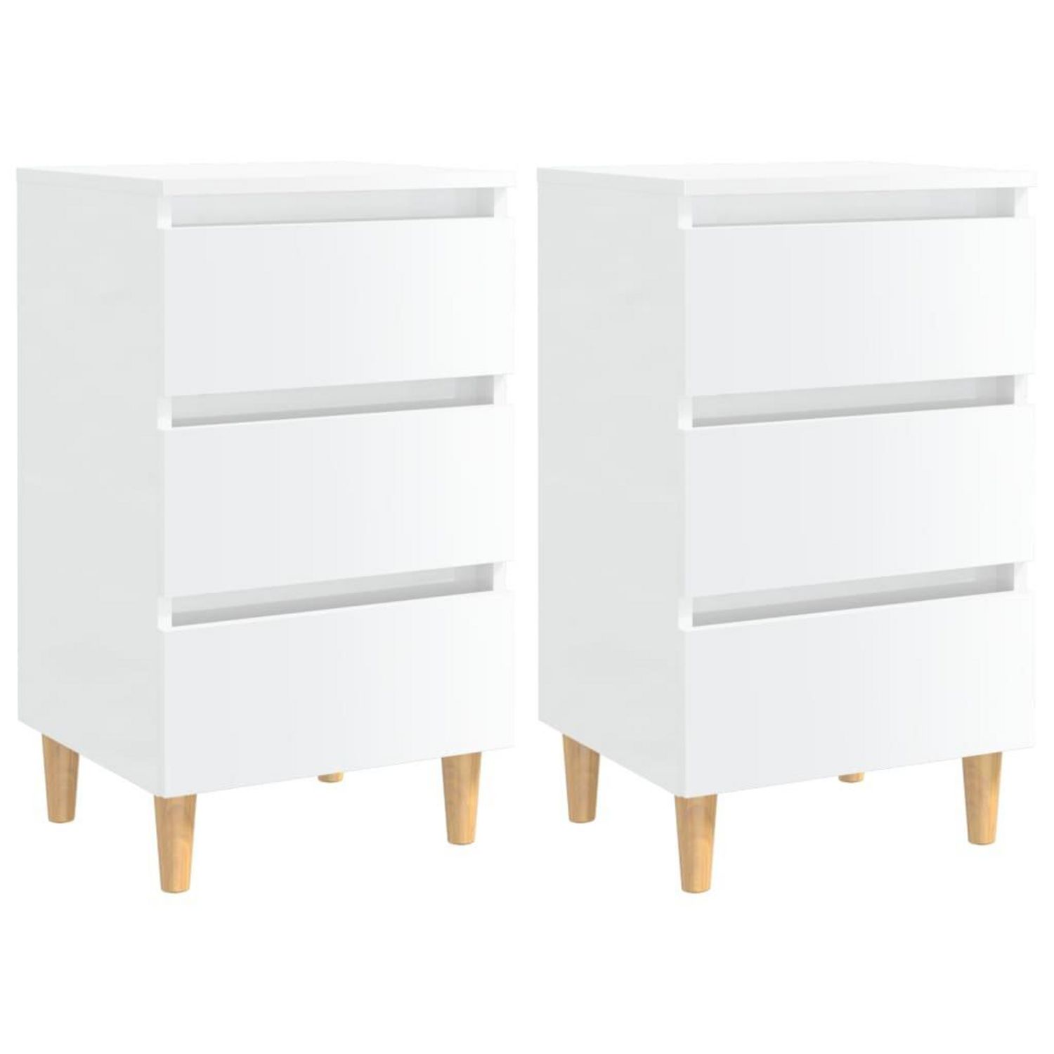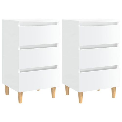 Tables de chevet pieds en bois 2 pcs blanc brillant 40x35x69 cm