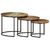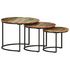 Les tables d'appoint sont fabriquees a la main a partir de bois de recuperation solide, une combinaison de bois recuperes y compris le teck, le bois de manguier, le pin, le hetre, etc. Ces bois sont recycles a partir de vieux batiments tels que des usines, des hangars et des bateaux. Cela en fait une excellente option ecologique dans la fabrication de meubles. Comme chaque piece est faite a la main, les couleurs varient avec de nombreuses nuances de bleu, vert, creme et parfois orange, rouge et rose revelees. Cela signifie meme que chacune est unique ! De plus, ces tables gigognes peuvent etre rangees les unes sous les autres pour gagner de la place.