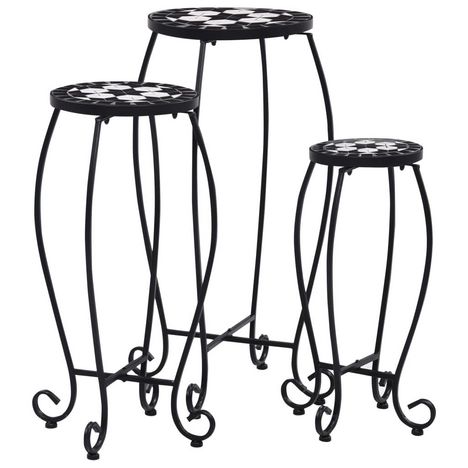 Tables mosaïque 3 pcs noir et blanc Ceramique
