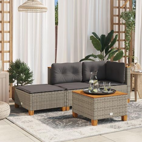 Tabouret de jardin et coussin gris 63,5x56x32 cm resine tressee