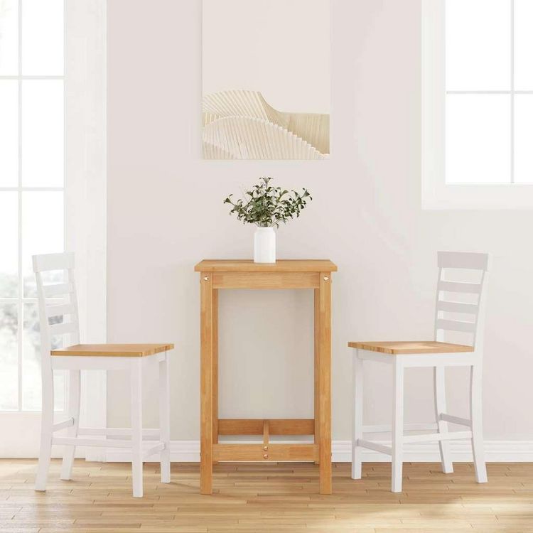 Tabourets de bar 2 pcs blanc bois massif d'hevea