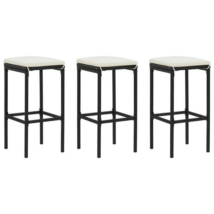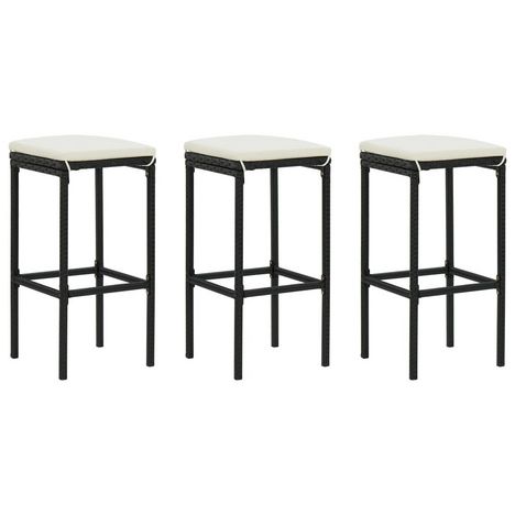 Tabourets de bar avec coussins lot de 3 noir resine tressee