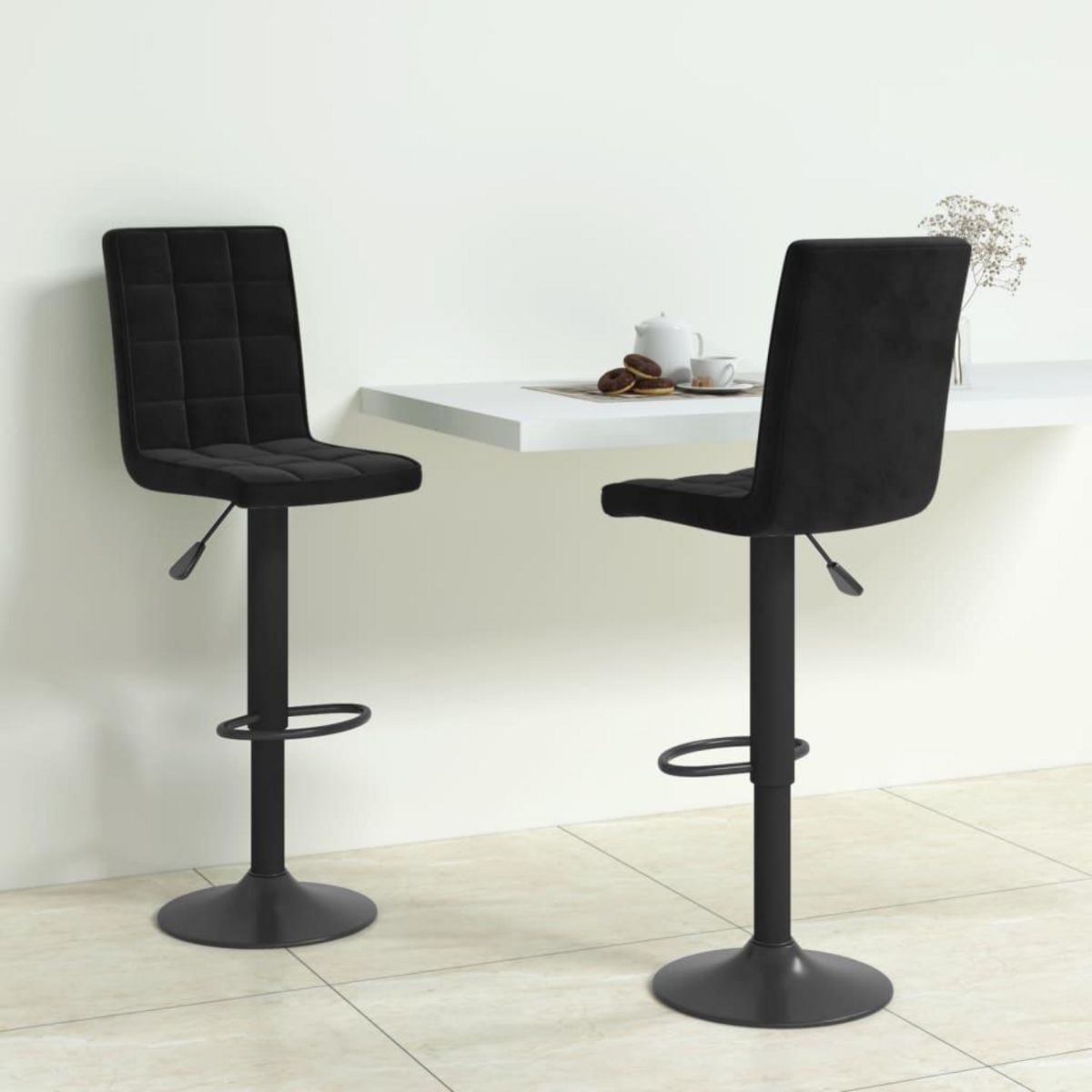 Tabourets de bar lot de 2 noir velours