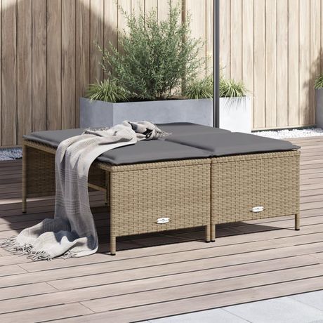 Tabourets de jardin avec coussins lot de 4 beige resine tressee