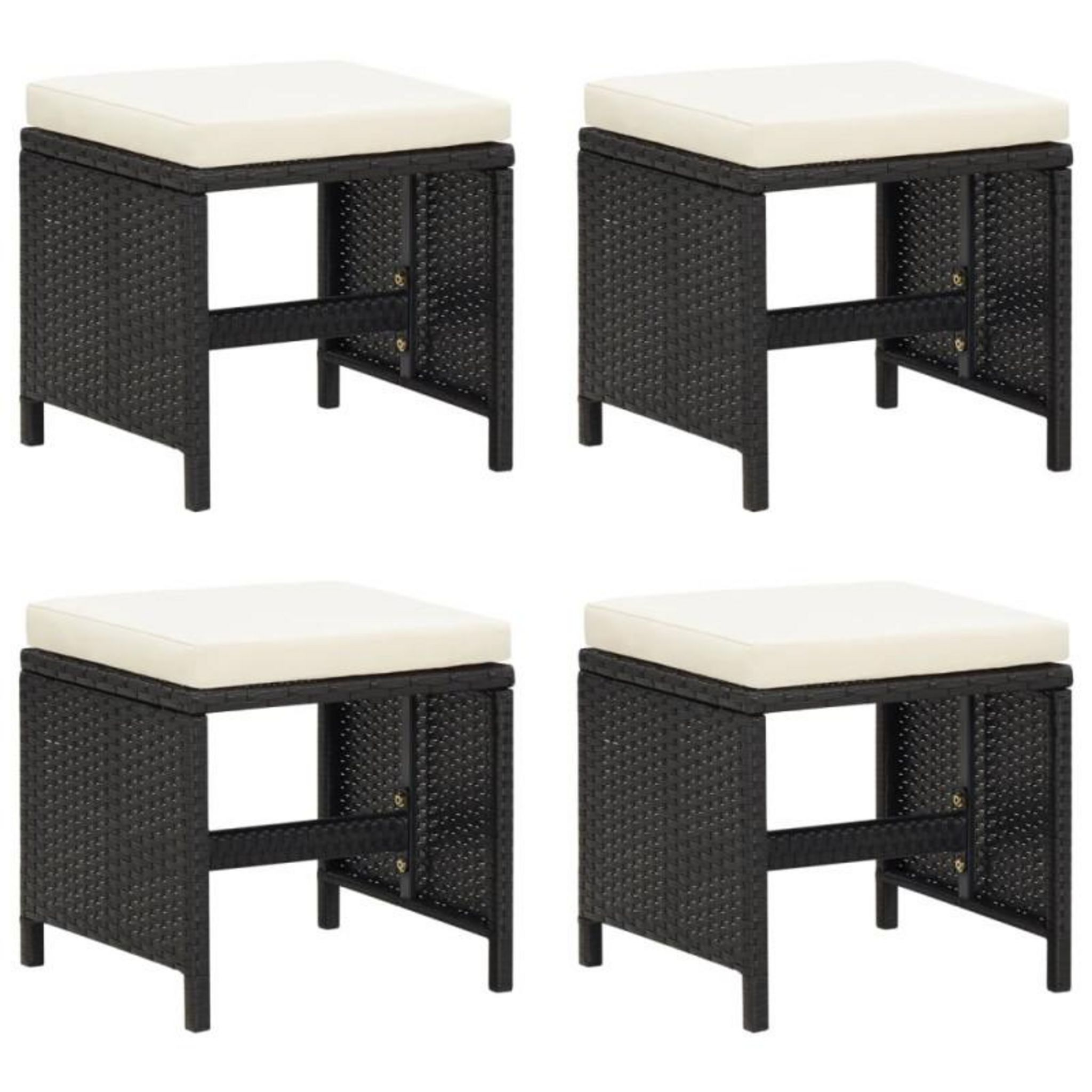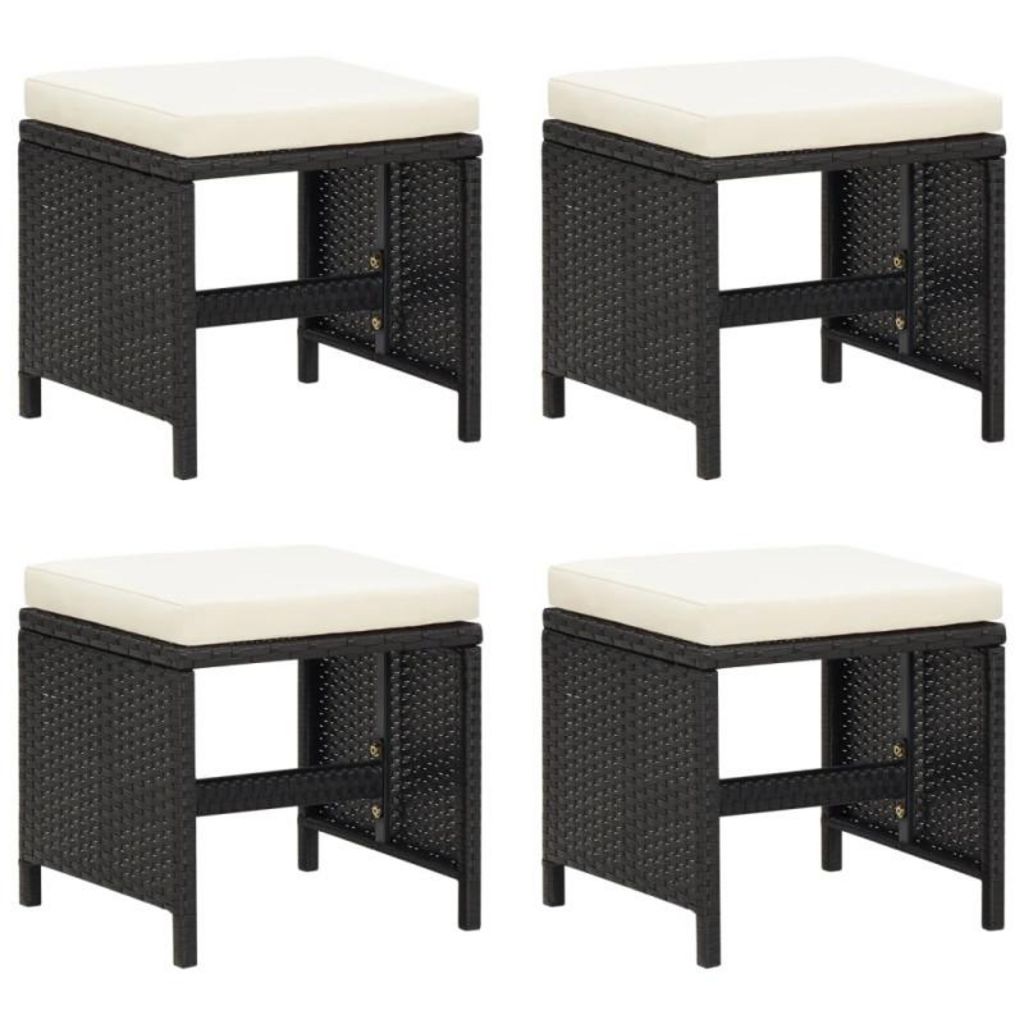 Tabourets de jardin avec coussins lot de 4 noir résine tressée