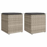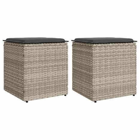 Tabourets de jardin et coussins lot de 2 gris clair poly rotin