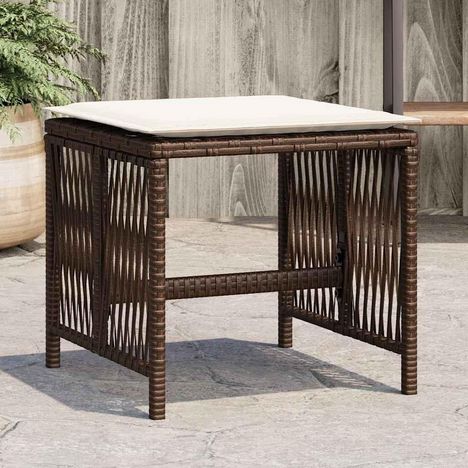 Tabourets de jardin et coussins lot de 4 marron resine tressee