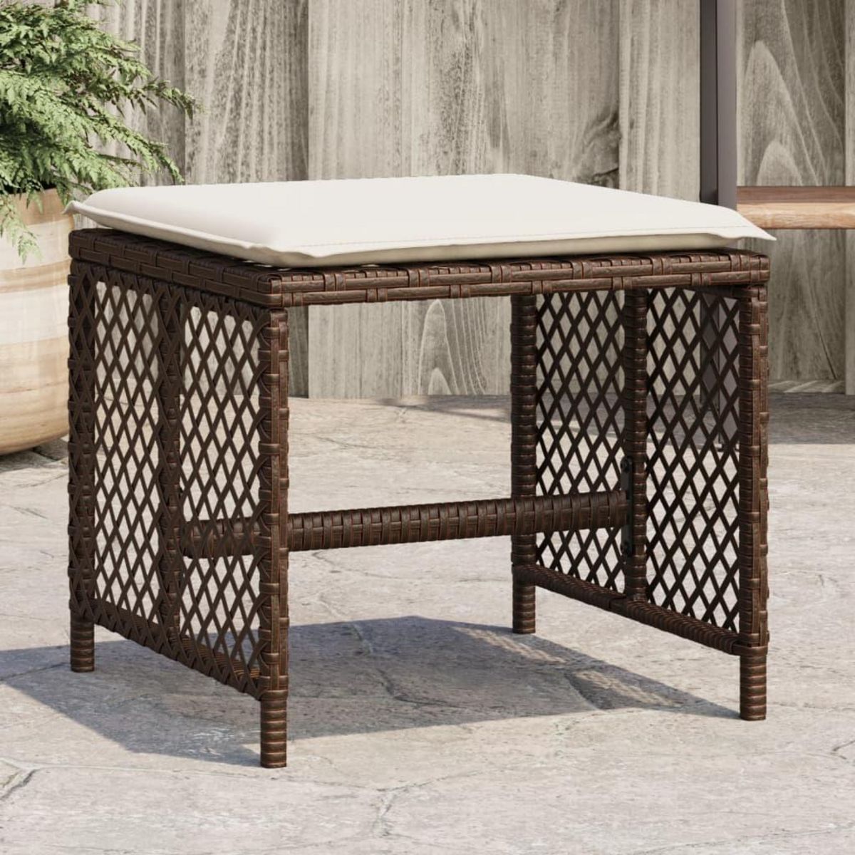 Tabourets de jardin et coussins lot de 4 marron resine tressee