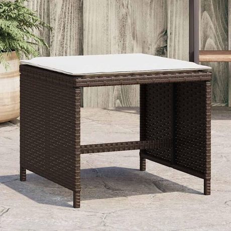 Tabourets de jardin et coussins lot de 4 marron resine tressee