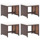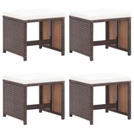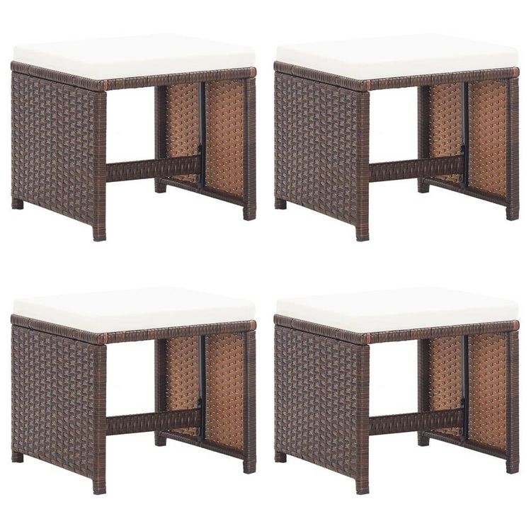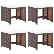 Tabourets de jardin lot de 4 et coussins Resine tressee Marron