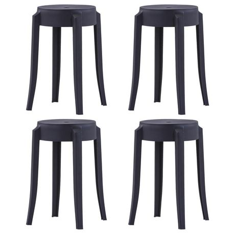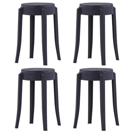 Avec un design simple mais pratique, cet ensemble de tabourets empilables se compose de 4 pieces et sera un excellent supplement a votre terrasse, balcon ou jardin. Fabriques en plastique, ces tabourets sont extremement robustes et faciles a nettoyer. Les tabourets etant tres legers, ils peuvent etr