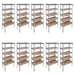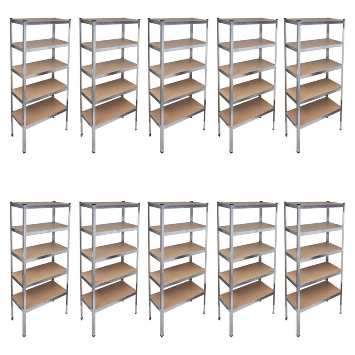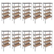 En savoir +Cet ensemble de 10 etageres de rangement vous offrira l'espace suffisant pour bien organiser vos objets. Ces etageres peuvent etre montees horizontalement ou verticalement pour repondre a vos besoins. Ces etageres en MDF de haute qualite sont soutenues par l'armature en acier robuste.