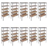Cet ensemble de 10 etageres de rangement vous offrira l'espace suffisant pour bien organiser vos objets. Ces etageres peuvent etre montees horizontalement ou verticalement pour repondre a vos besoins. Ces etageres en MDF de haute qualite sont soutenues par l'armature en acier robuste.Chaque