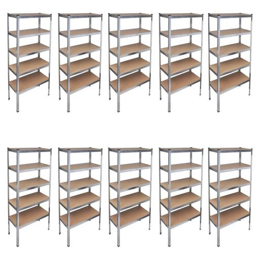 Chaque tablette a une capacite de charge de 175 kg (repartition uniforme). Donc la capacite de charge totale est de 875 kg. Grace a ses revetements de zinc, ces etageres resistent a la corrosion pour garantir des annees utilisation.