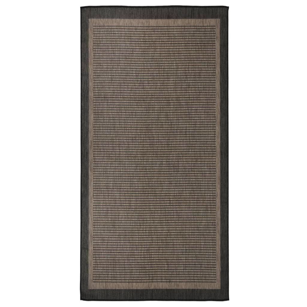 Tapis a tissage plat d'exterieur 100x200 cm Marron fonce