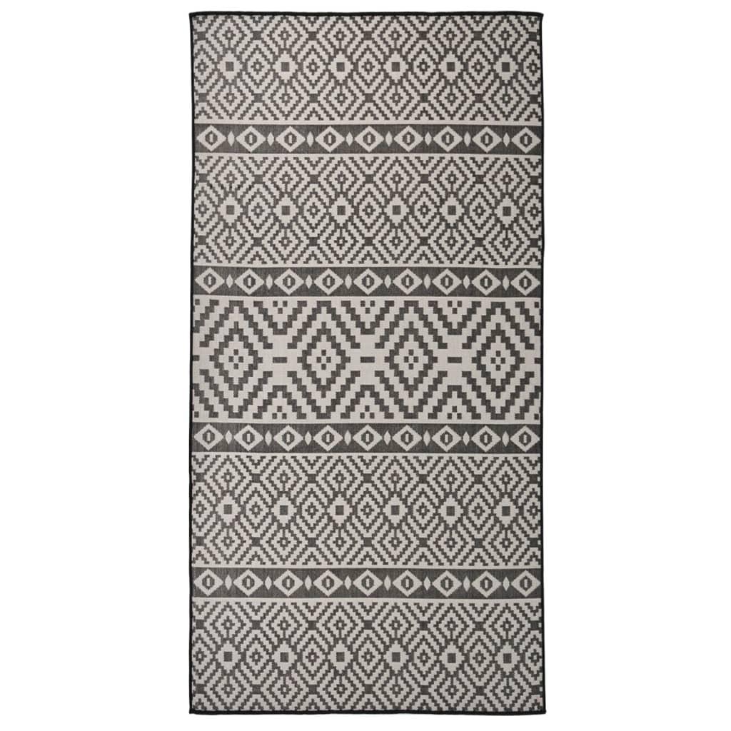 Tapis a tissage plat d'exterieur 100x200 cm Rayures noires