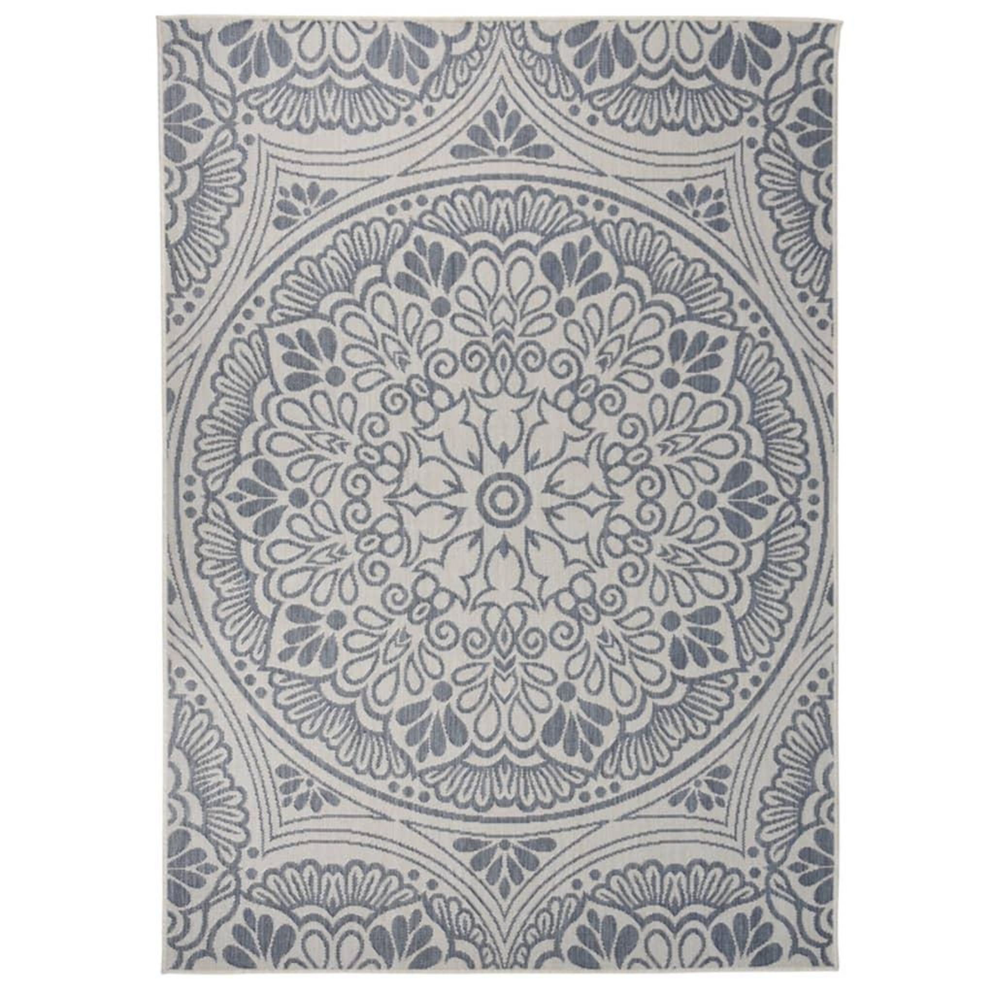 Tapis a tissage plat d'exterieur 120x170 cm Motif bleu