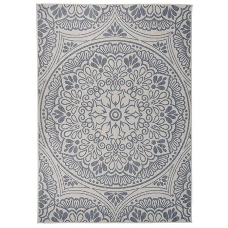 Tapis a tissage plat d'exterieur 140x200 cm Motif bleu