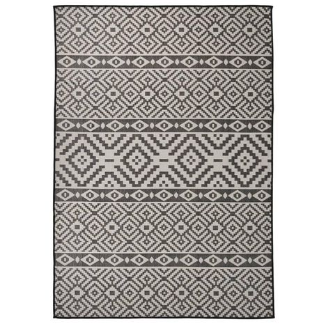 Tapis a tissage plat d'exterieur 140x200 cm Rayures noires