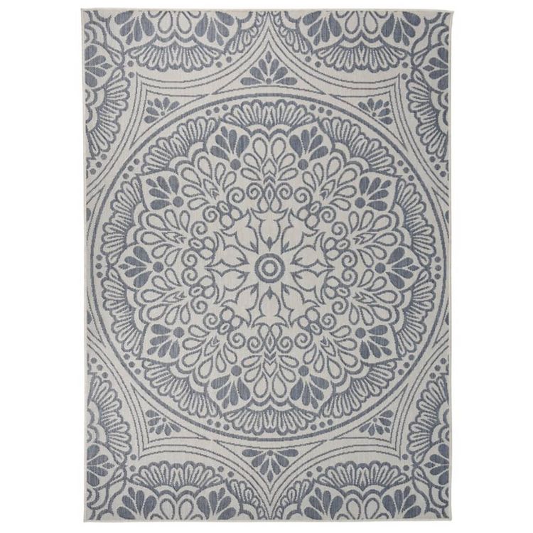 Tapis a tissage plat d'exterieur 200x280 cm Motif bleu