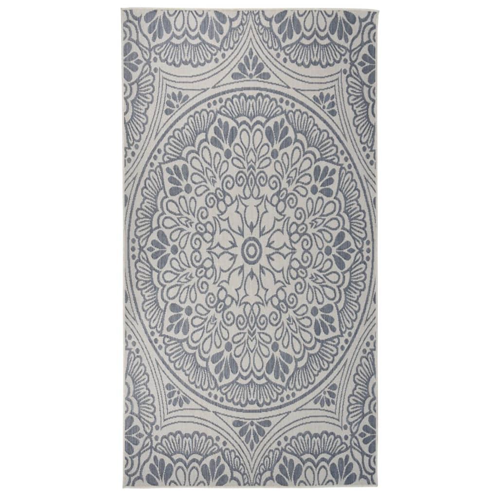 Tapis a tissage plat d'exterieur 80x150 cm Motif bleu