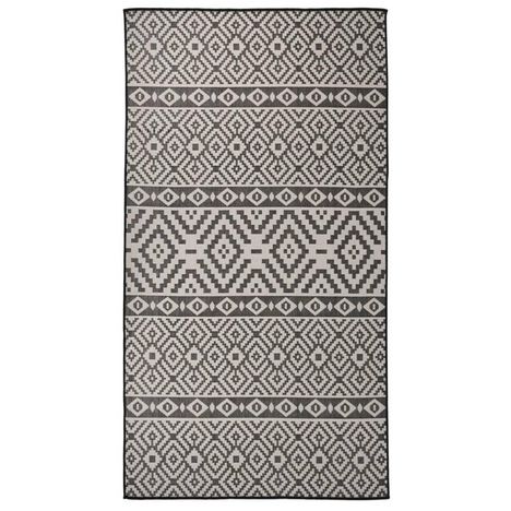 Tapis a tissage plat d'exterieur 80x150 cm Rayures noires