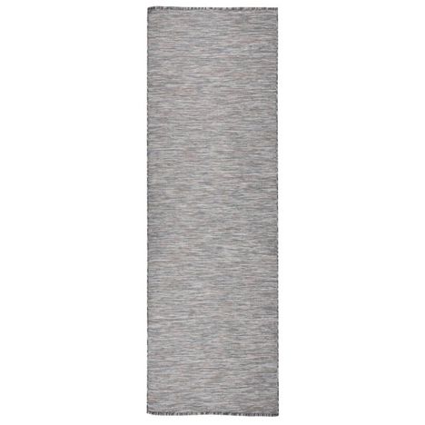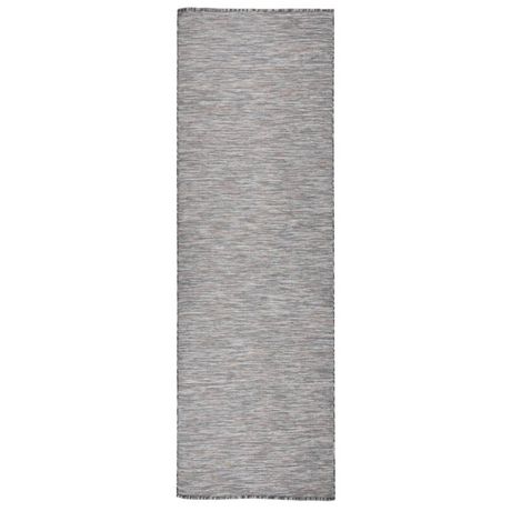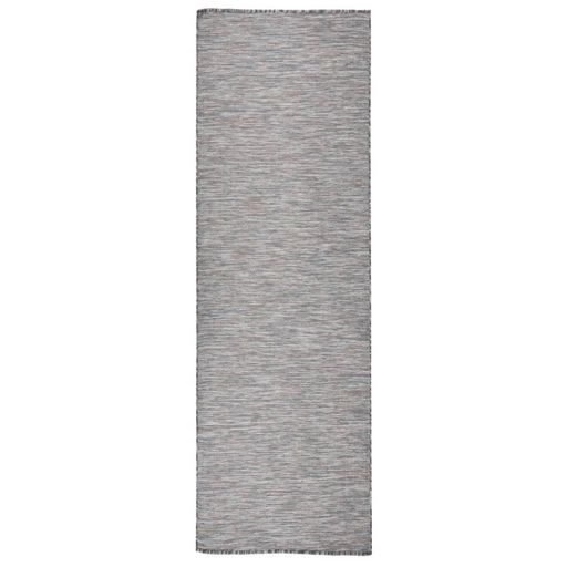 Tapis a tissage plat d'exterieur 80x250 cm Marron et bleu