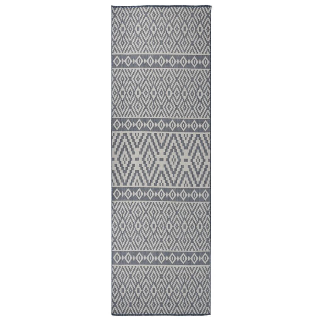 Tapis a tissage plat d'exterieur 80x250 cm Rayures bleues