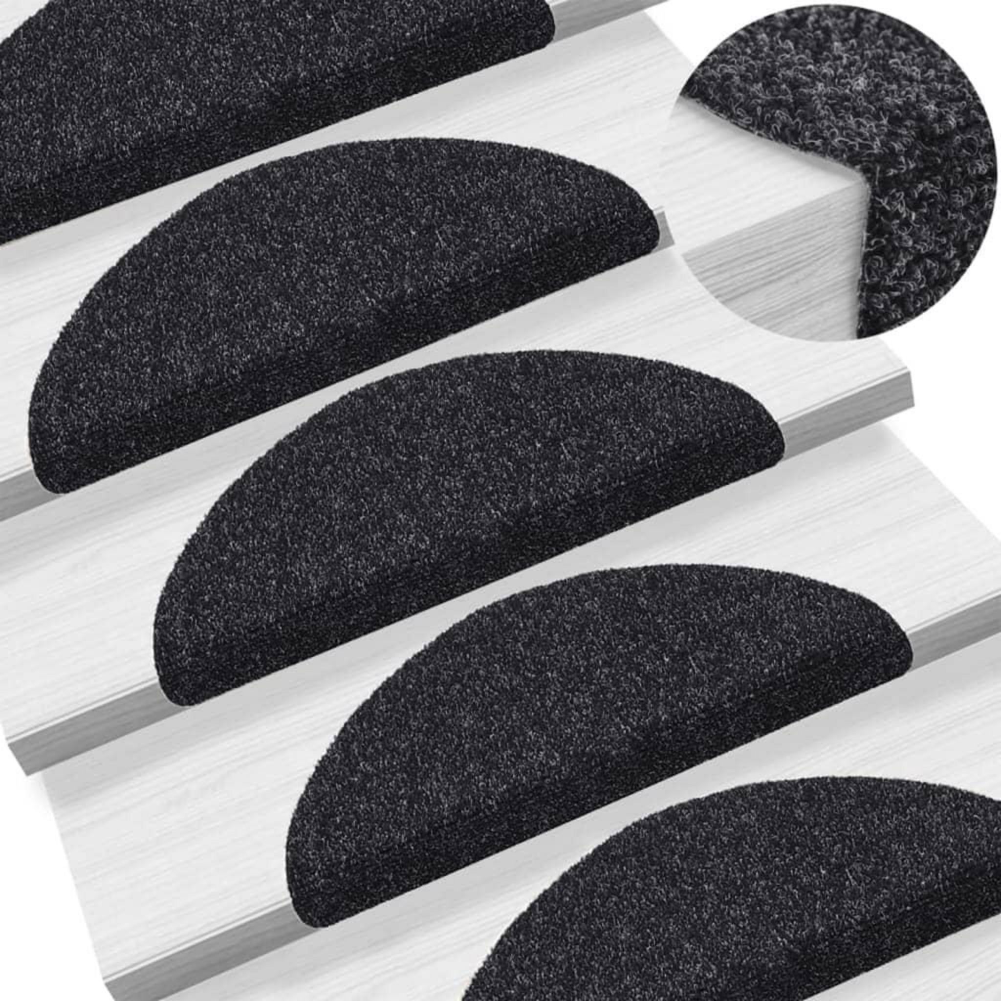 Tapis d'escalier auto-adhesif Poinçon aiguillete 15 pcs Noir