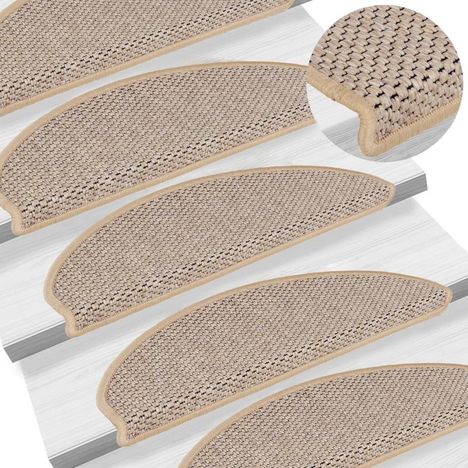 Ces tapis sont faits d'un tissu solide a l'aspect de sisal, donc ils sont insonorisants, antiderapants, chauds et confortables. Ces tapis d'escalier sont egalement lavables et sont plies pour proteger a la fois le haut et l'avant de l'escalier. Les bandes adhesives au dos permettent de fixer facilement et rapidement ces tapis aux escaliers.