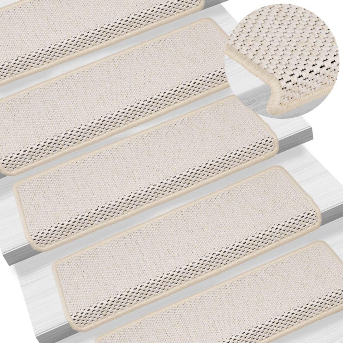 Ces tapis sont faits d'un tissu solide a l'aspect de sisal, donc ils sont insonorisants, antiderapants, chauds et confortables. Ces tapis d'escalier sont egalement lavables et sont plies pour proteger a la fois le haut et l'avant de l'escalier. Les bandes adhesives au dos permettent de fixer facilement et rapidement ces tapis aux escaliers.